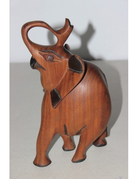 Figurka słonia pochodząca z Danii z lat 70. Wykonana jest z drewna tekowego.