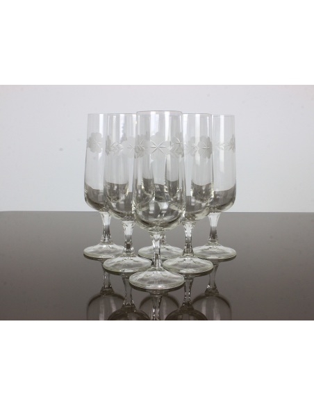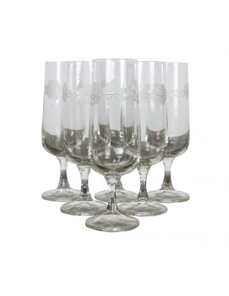 Komplet sześciu kryształowych kieliszków do szampana, pochodzących z lat 60.