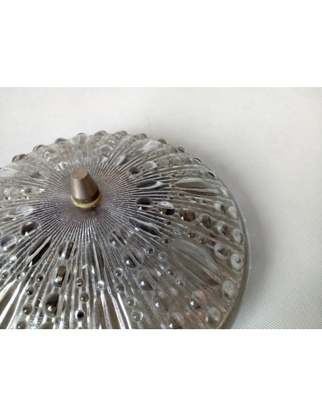 Plafon Polam wyprodukowany w Polsce w latach 60. Został wykonany ze szkła i metalu chromowanego.