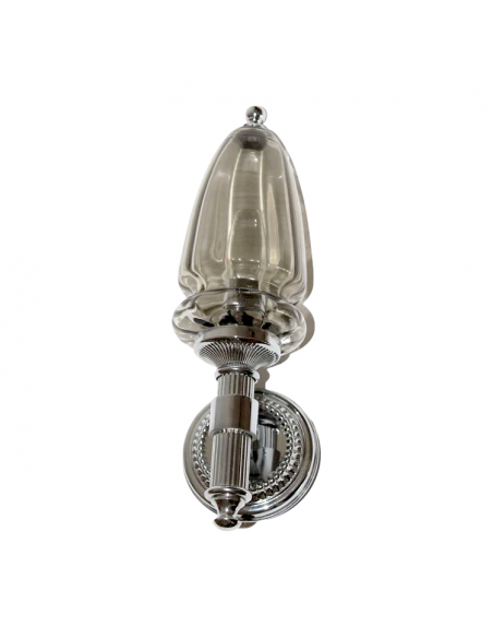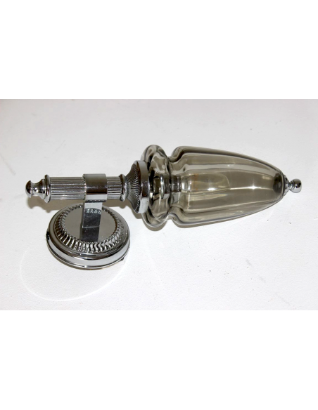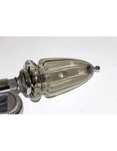 Kinkiet zaprojektowany przez Egona Hillebranda dla wytwórni Hillebrand w latach 60. Wykonany jest z dymionego szkła i elementów z mosiądzu chromowanego.