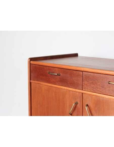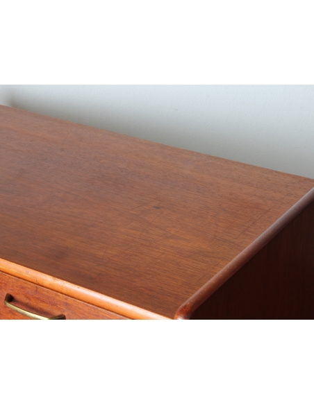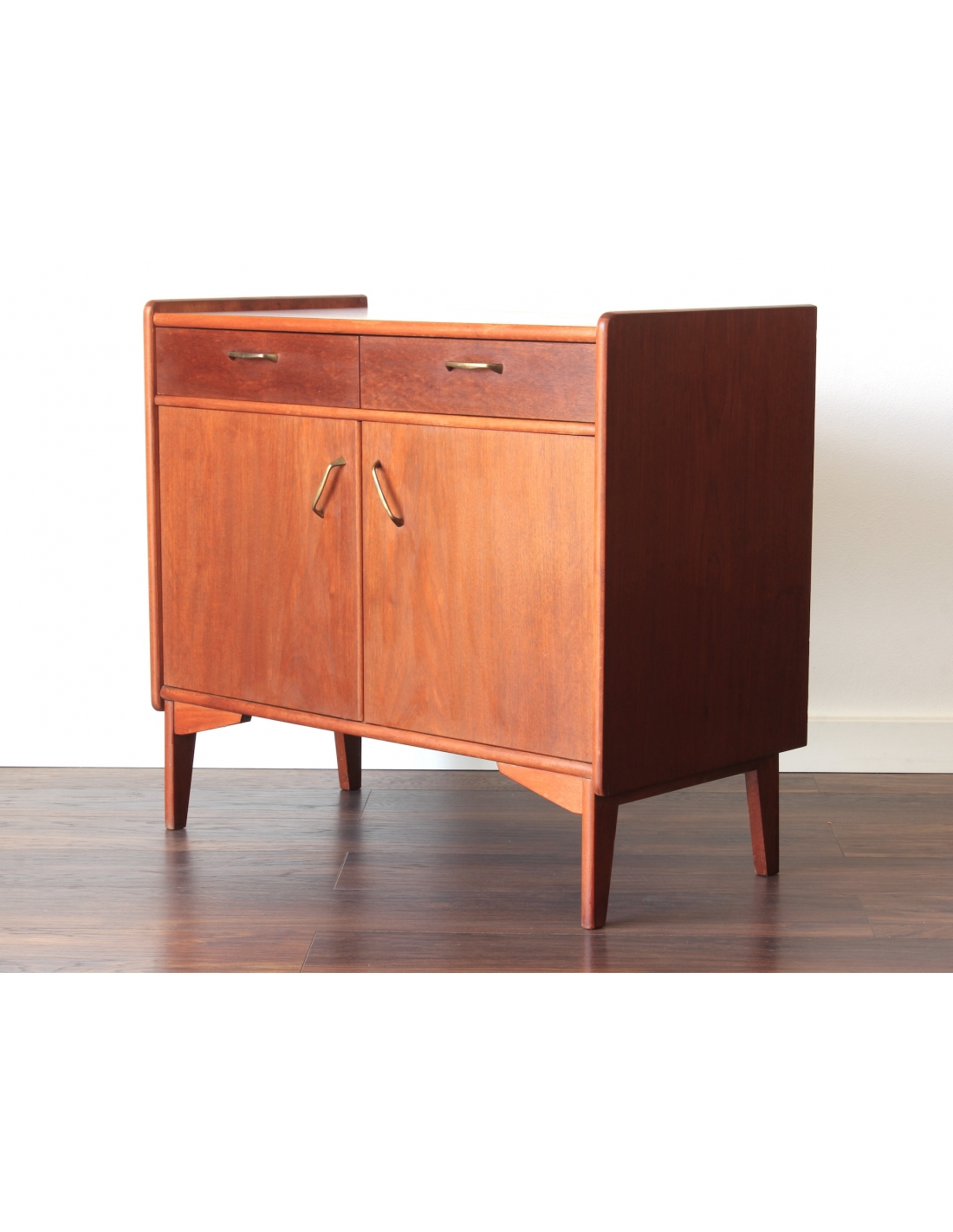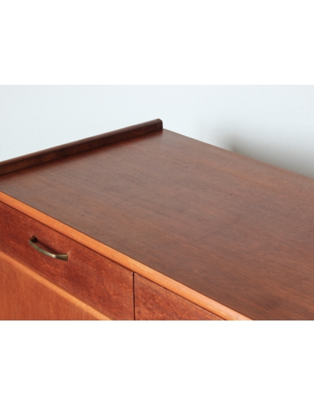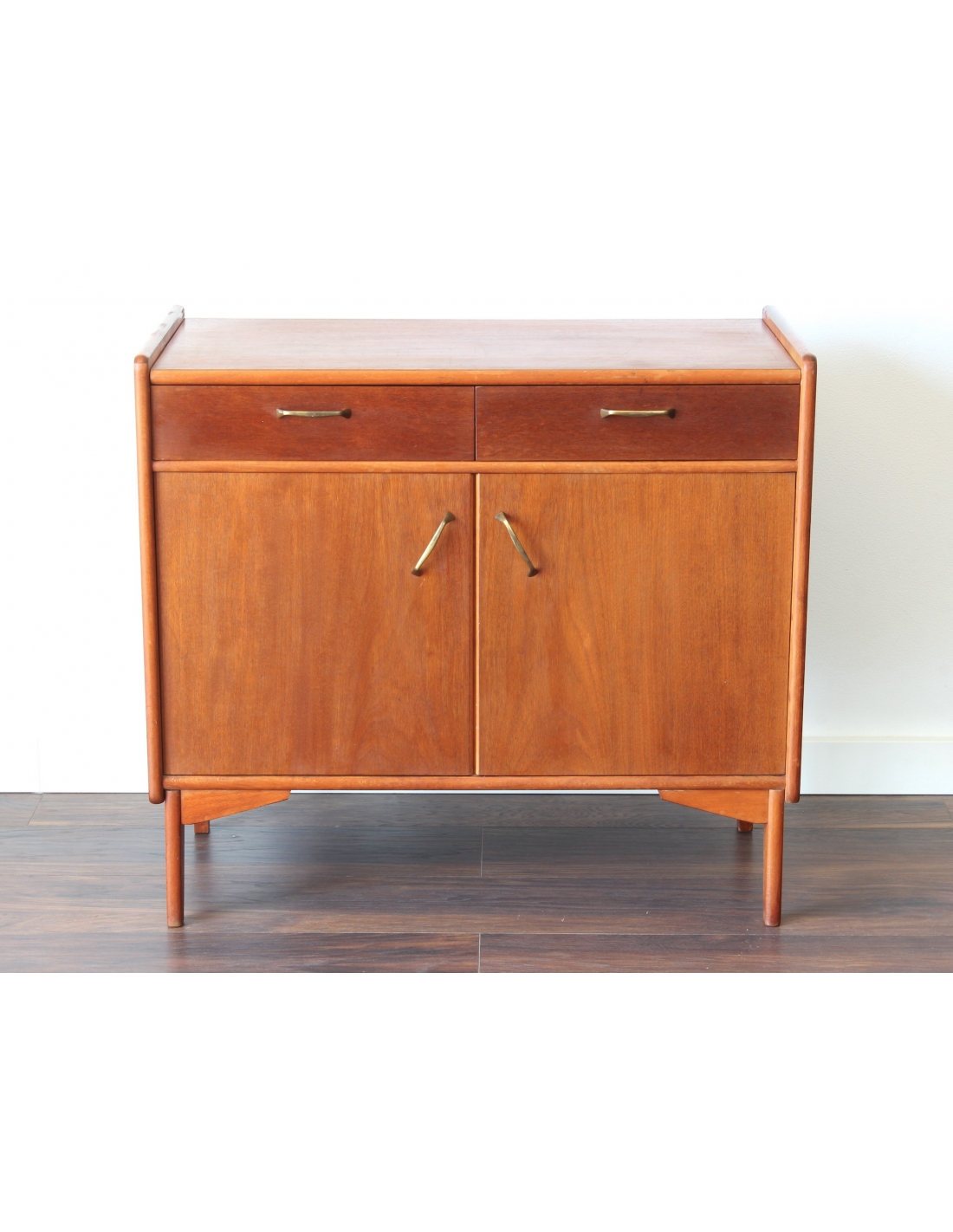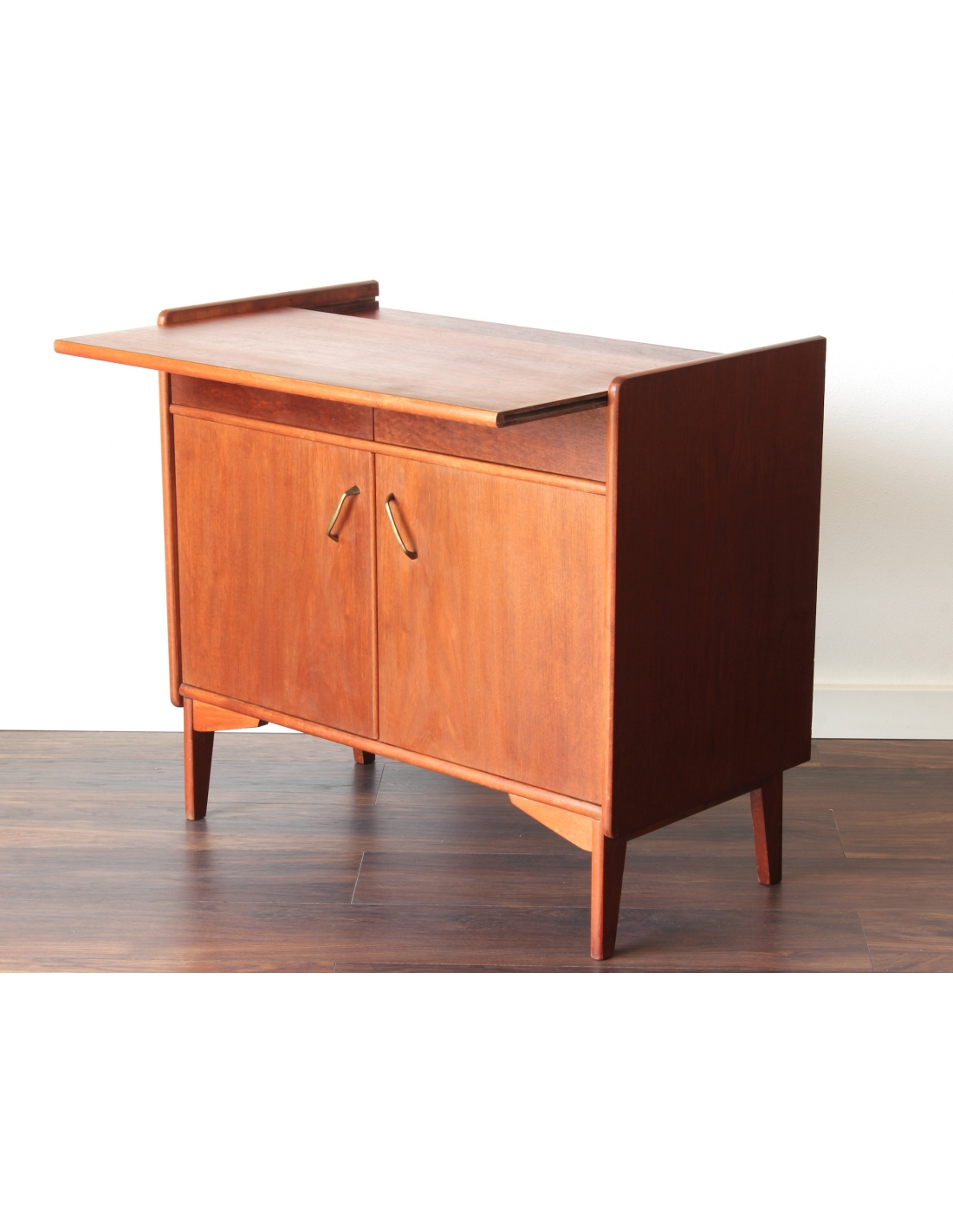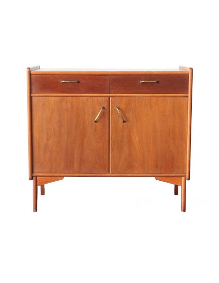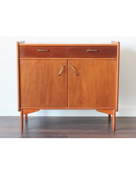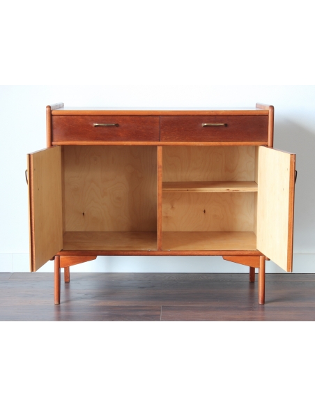 Drewniana szafka fornirowana drewnem tekowym. Posiada dwie szuflady oraz dwie niezależne komory. W jednej z nich znajduje się dodatkowa półka. Niewątpliwym jej atutem i wyróżnikiem jest wysuwany blat. Blat posiada rysy widoczne na dwóch ostatnich zdjęciach.