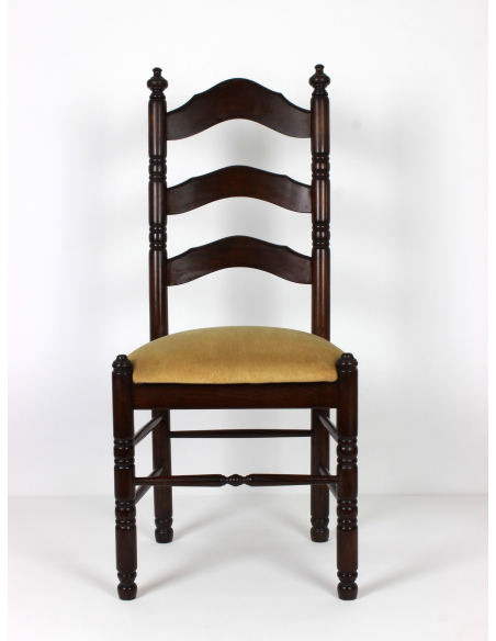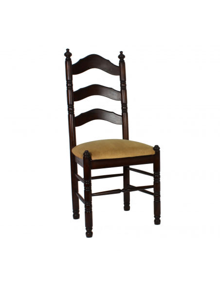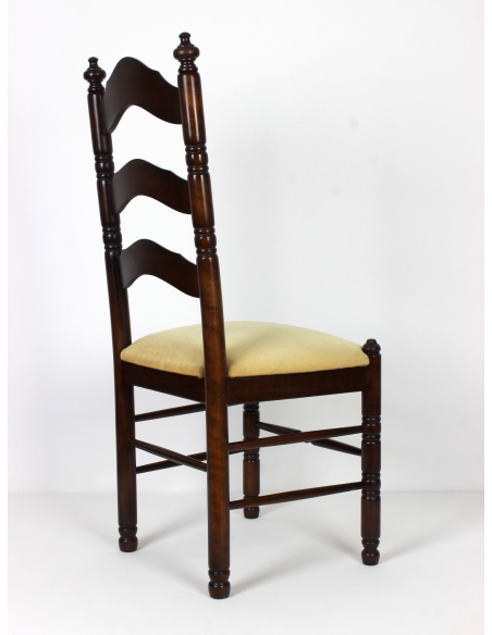 Drewniane krzesło pochodzące z lat 70. Obicie siedziska i oparcia materiałowe. Konstrukcja stabilna.