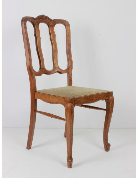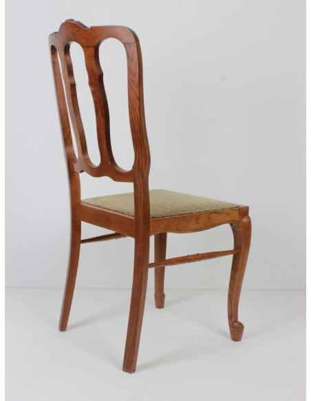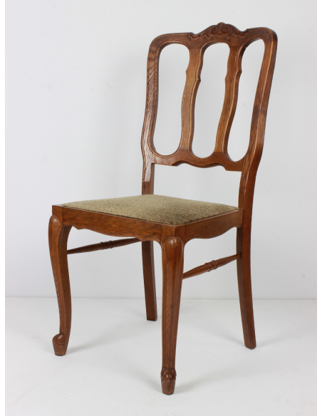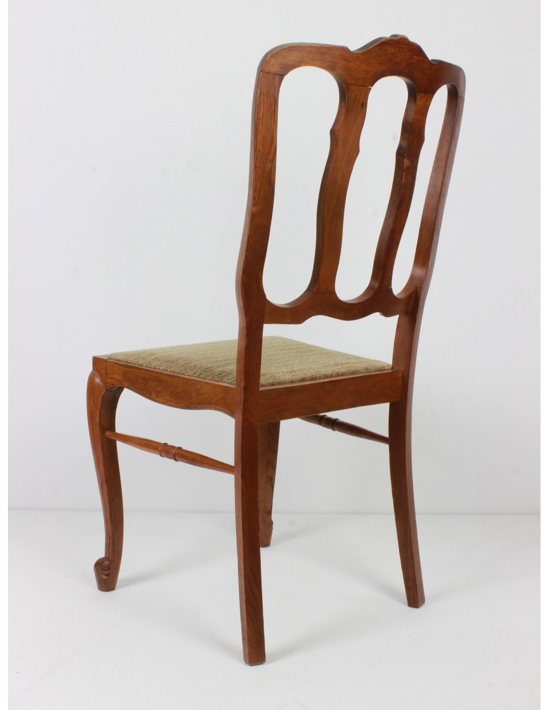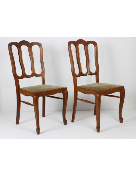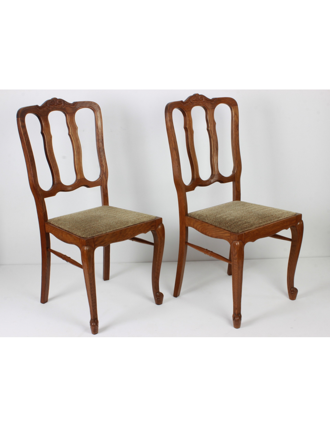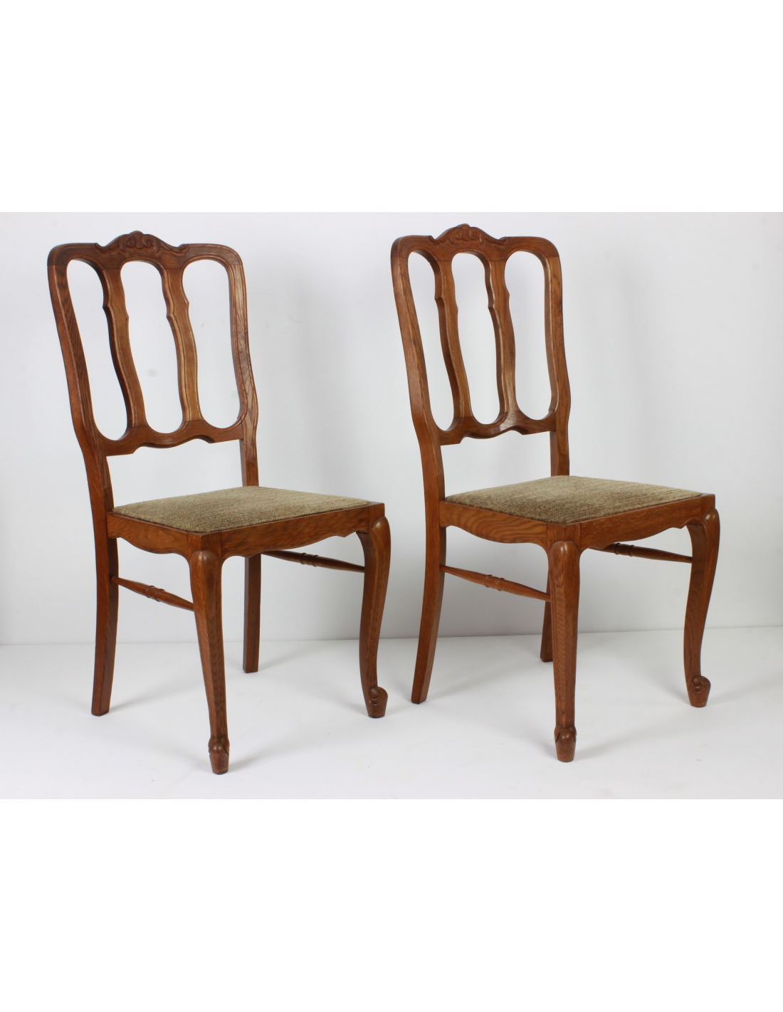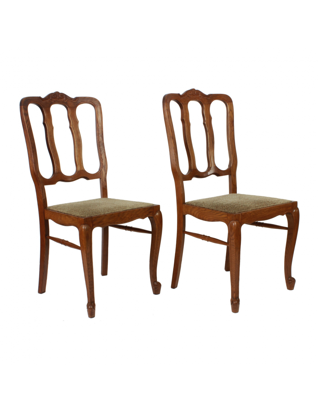 Para krzeseł pochodzących z lat 50. Obicie siedziska wełniane. Konstrukcja stabilna.