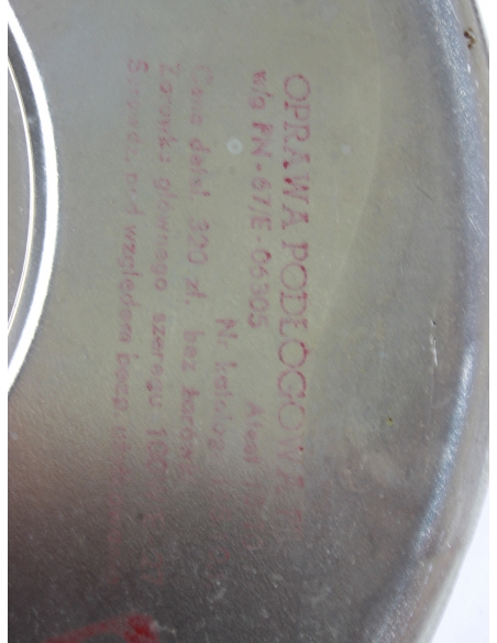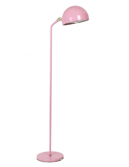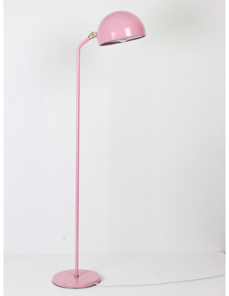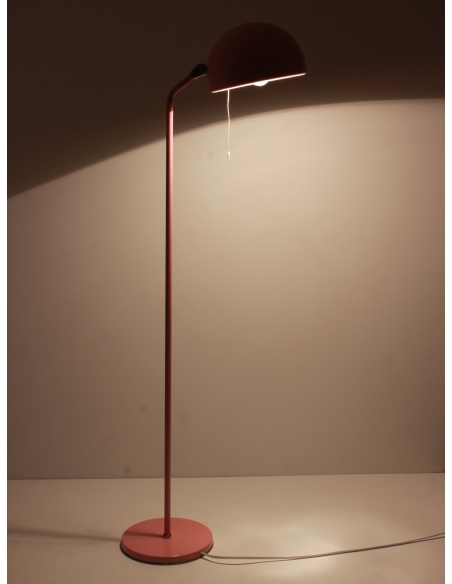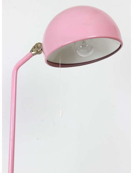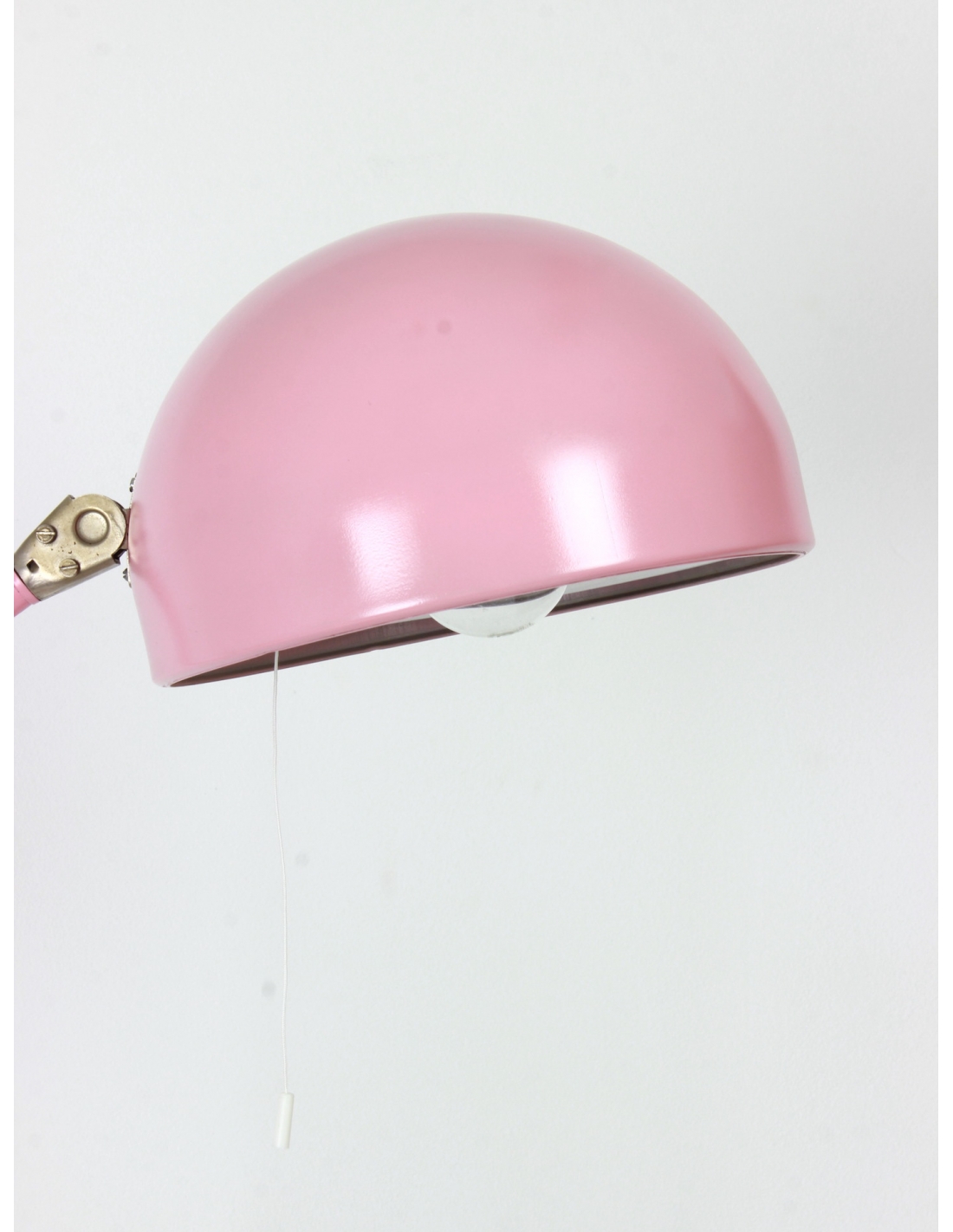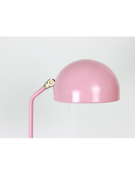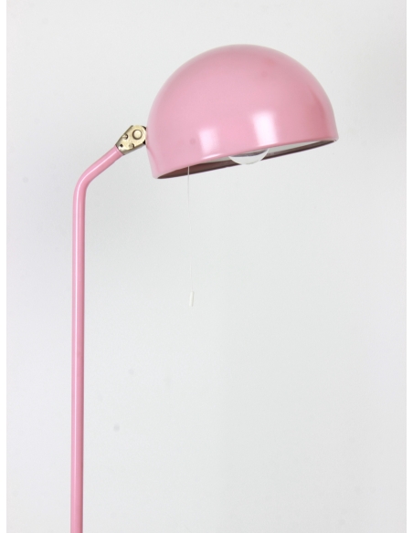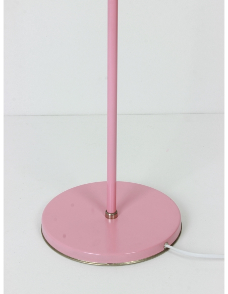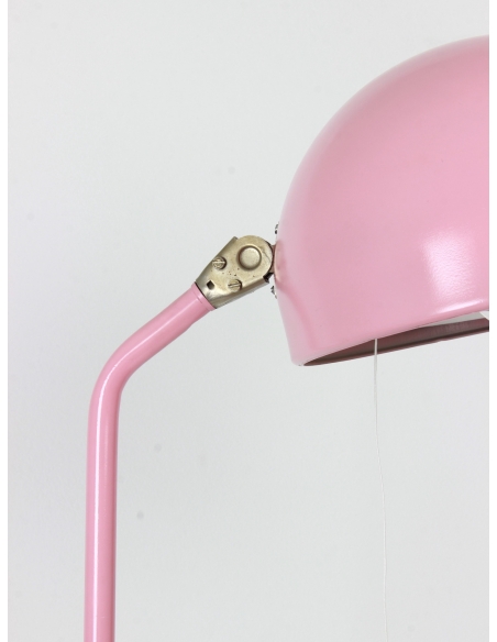 Lampa podłogowa wyprodukowana w Polsce w latach 60 przez ZAOS. Model PR-11. Wykonana została z lakierowanej na kolor różowy stali. Klosz posiada regulację kąta. Sygnatura wybita na podstawie lampy.
