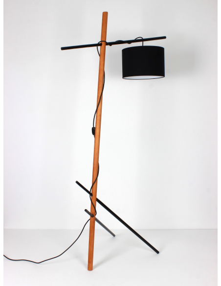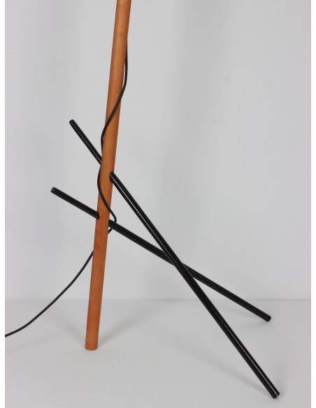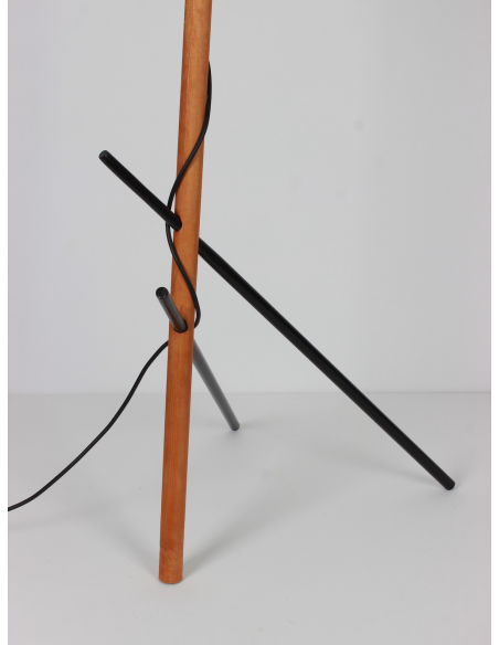 Drewniana lampa podłogowa pochodząca z lat 70. Inspirowana pałeczkami do sushi i stąd jej nazwa "sushi lamp". Abażur materiałowy. Lampa charakteryzuje się bardzo ciekawą formą. Prawdziwy unikat.