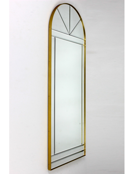 Ekskluzywne lustro wyprodukowane przez niemiecką firmę Schoninger w latach 60. Składa się z dziesięciu frezowanych kryształowych paneli oprawionych w mosiężną ramę. Wykonane z dbałością o najdrobniejsze detale przy użyciu najwyższej jakości materiałów. Prawdziwy unikat.