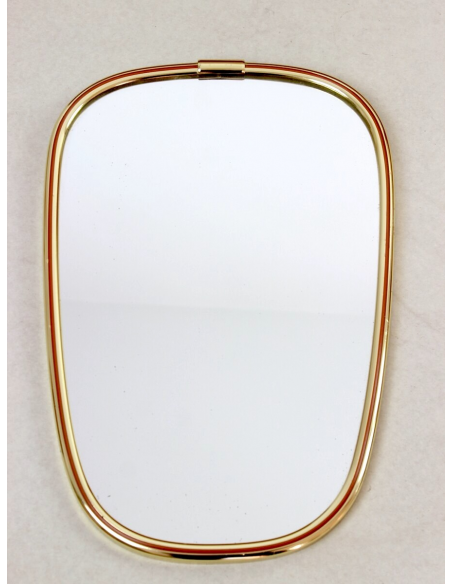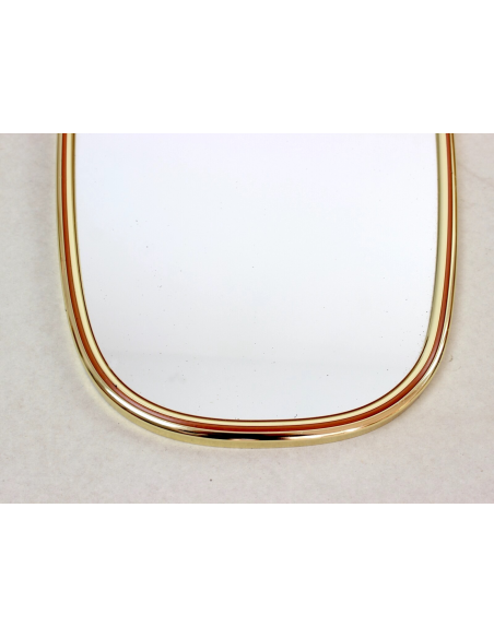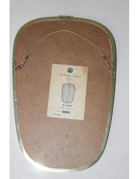 Kryształowe lustro w mosiężnej ramie, Karl Lenz. Wyprodukowane w Niemczech w latach 60. Tafla lustra posiada minimalne przebarwienia w postaci niewielkich kropek, które nie mają wpływu na urok lustra.