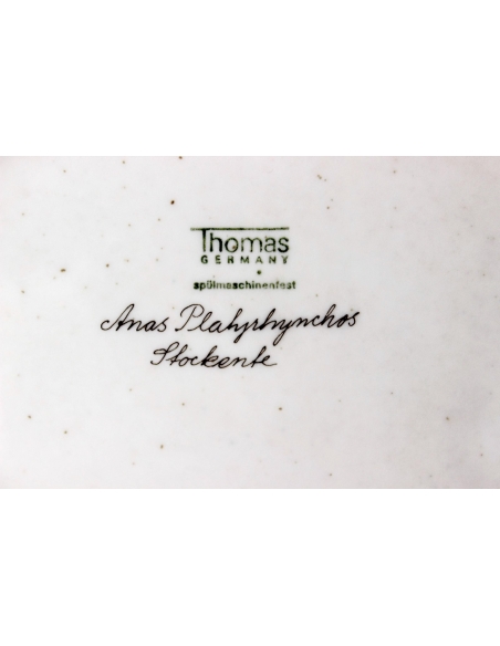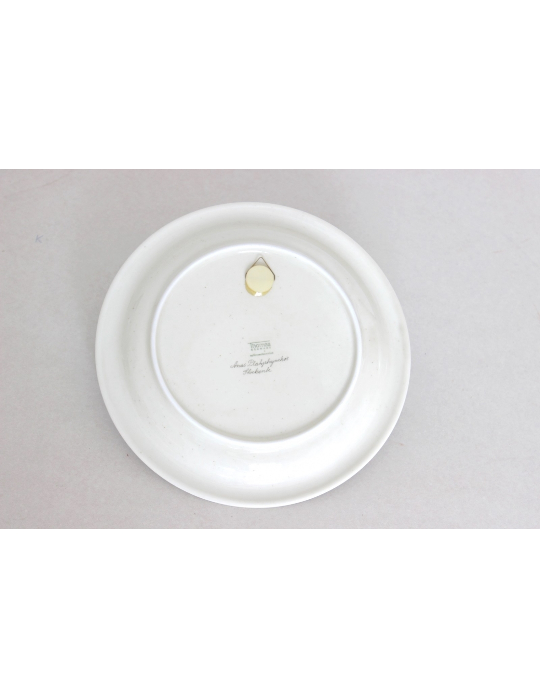 Dekoracyjny, porcelanowy talerz wyprodukowany w latach 70., przez firmę Rosenthal Tohomas. Talerz ma możliwość zawieszenia na ścianie.