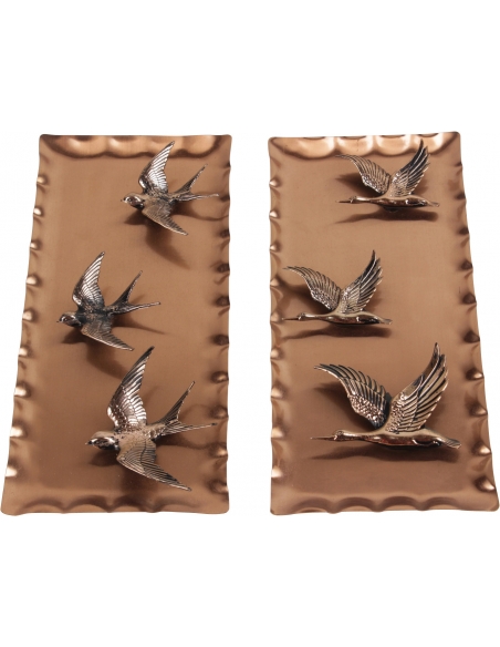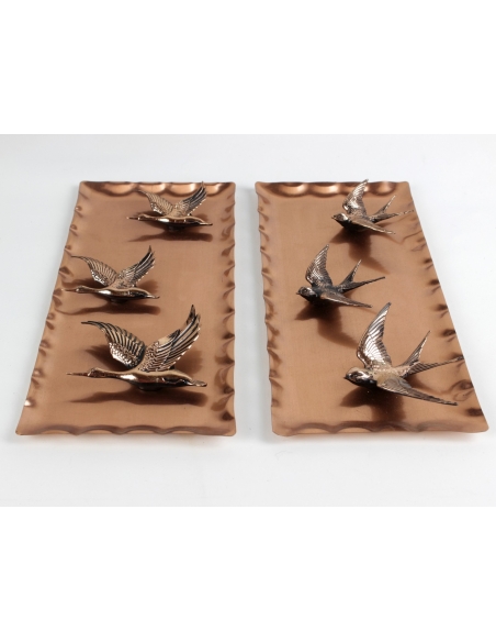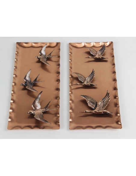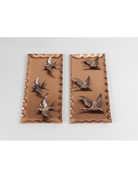 Para płyt ściennych pochodzi z lat 70. Wykonane są z metalu w miedzianym kolorze.