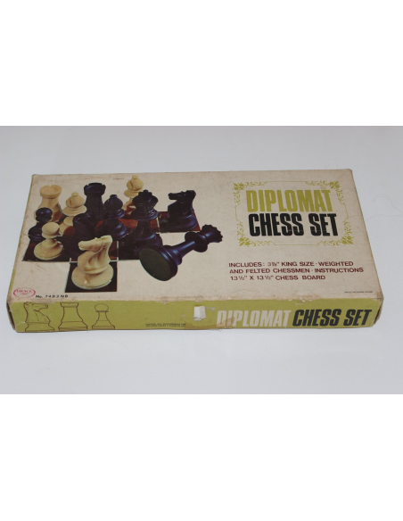 Szachy Diplomat Chess Set, wyprodukowane latach 70. Pionki wykonane z tworzywa sztucznego.
