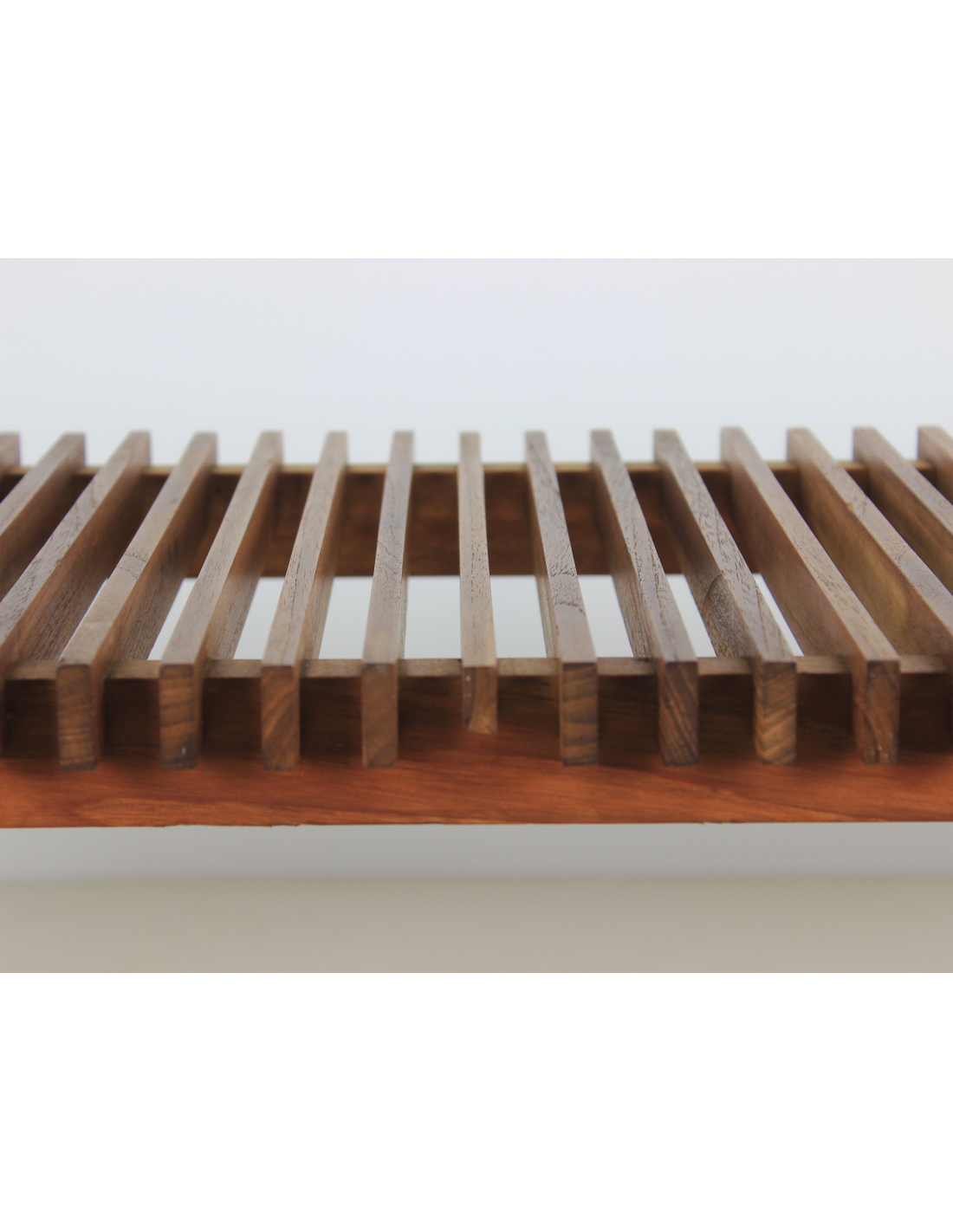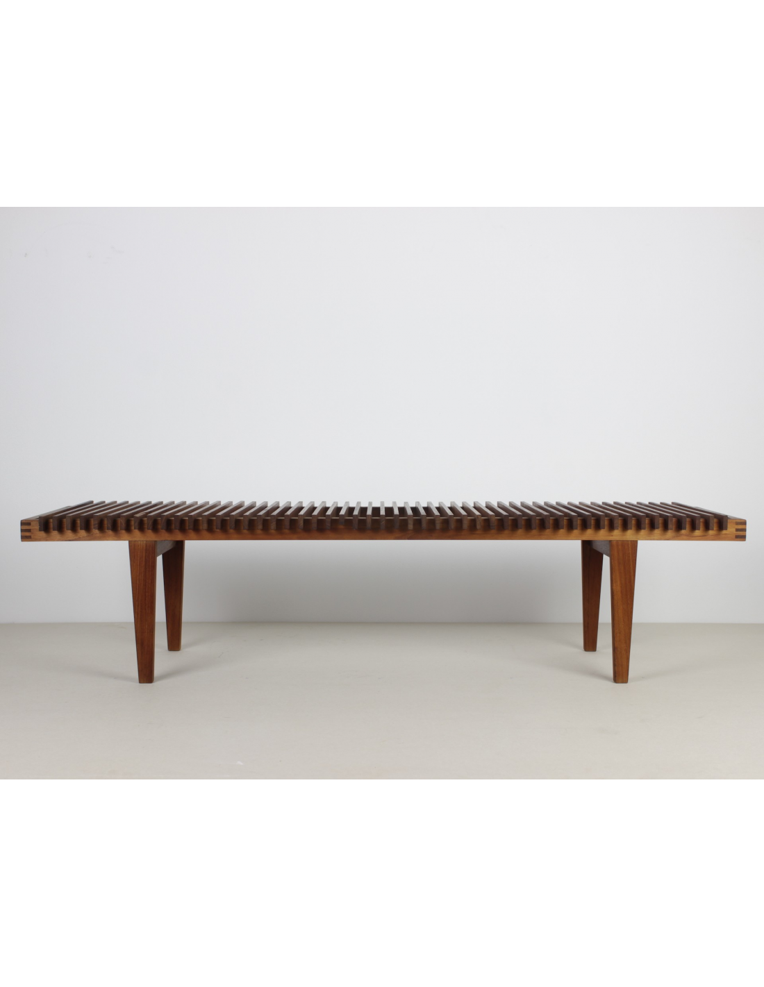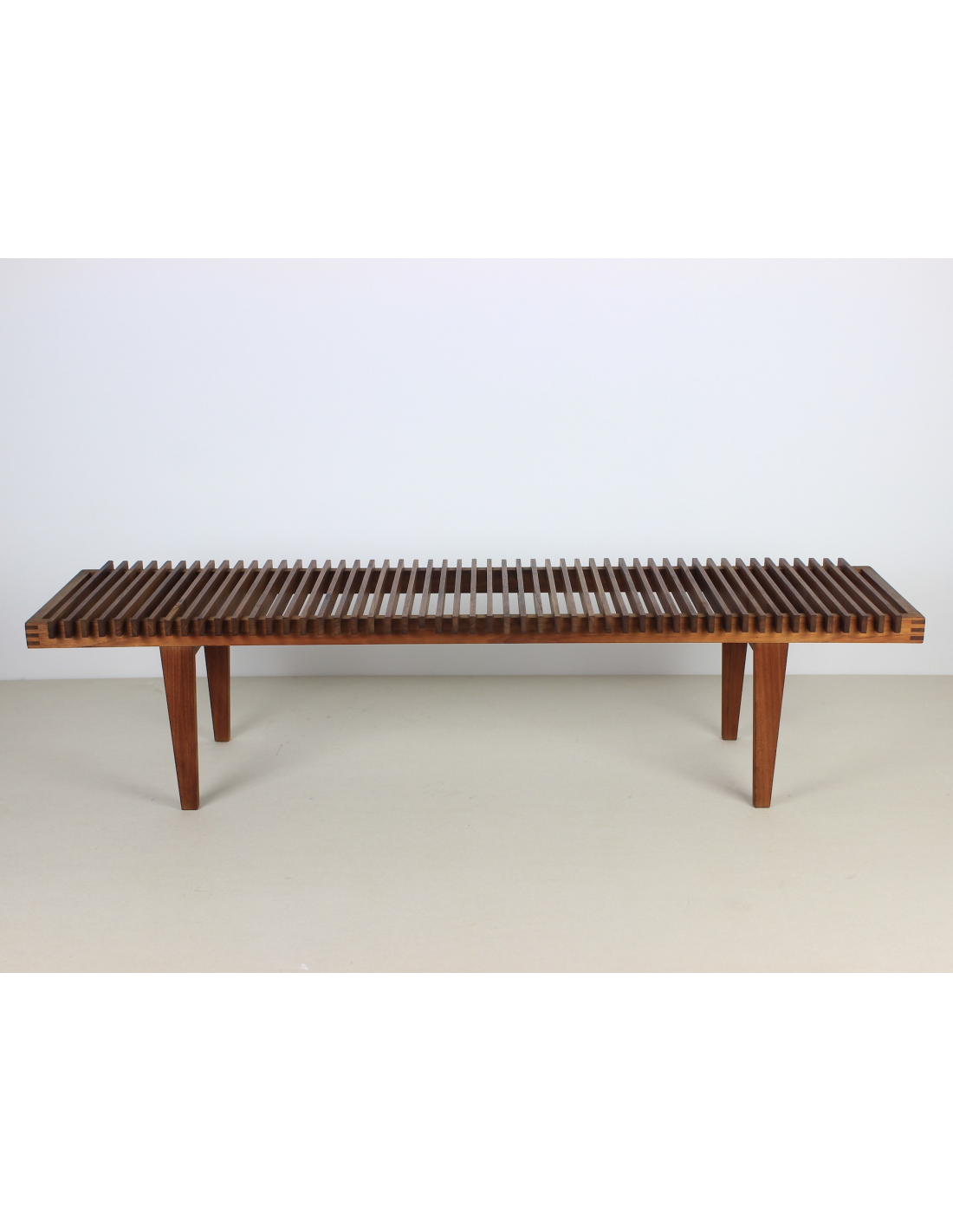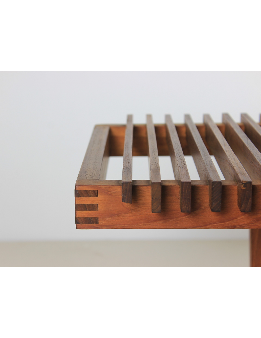 Ławka wyprodukowana w Danii w latach 60-tych wykonana jest z litego drewna tekowego.