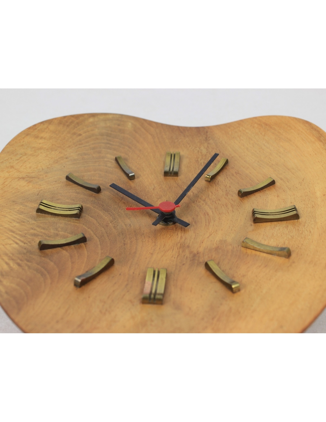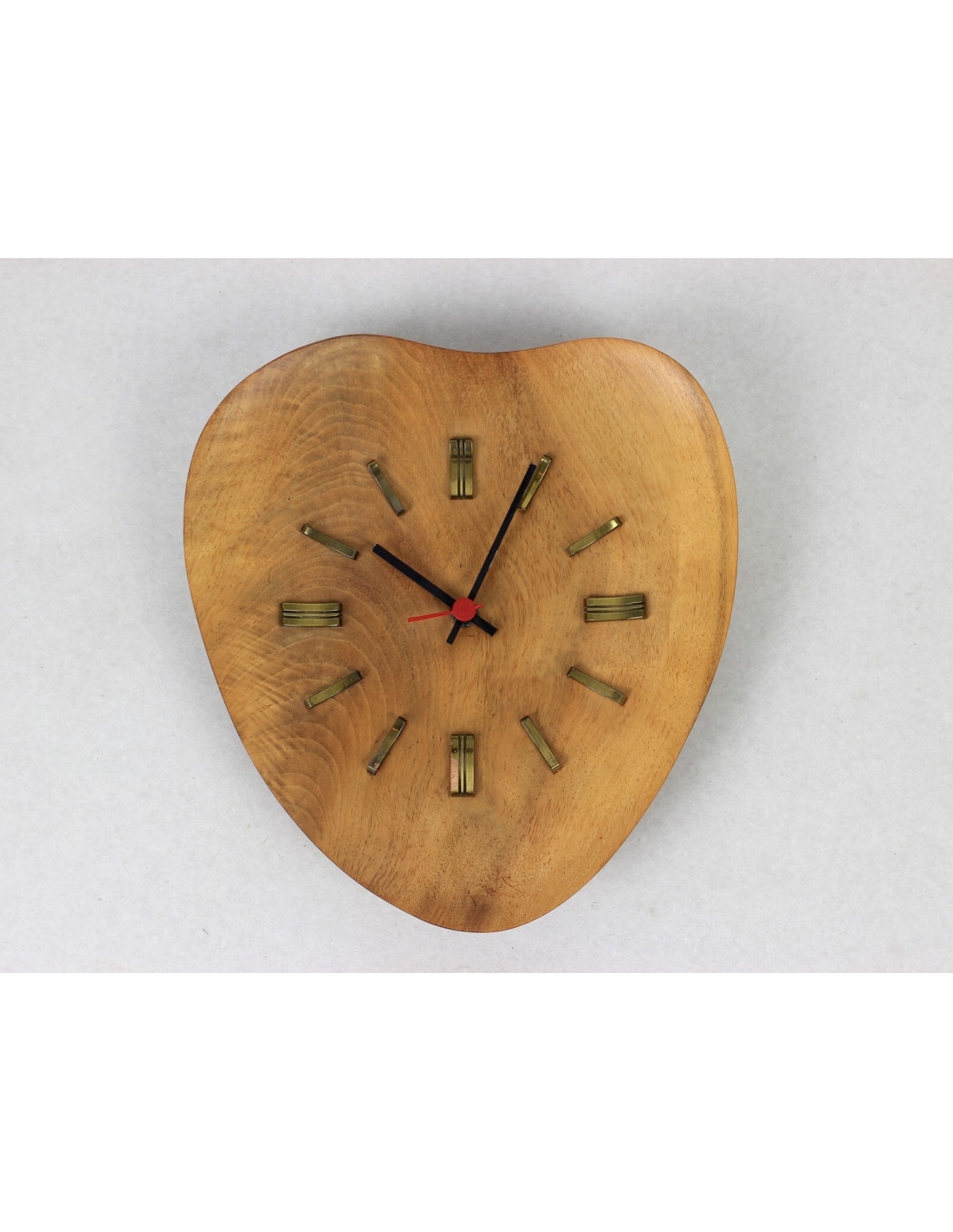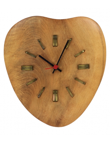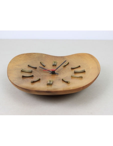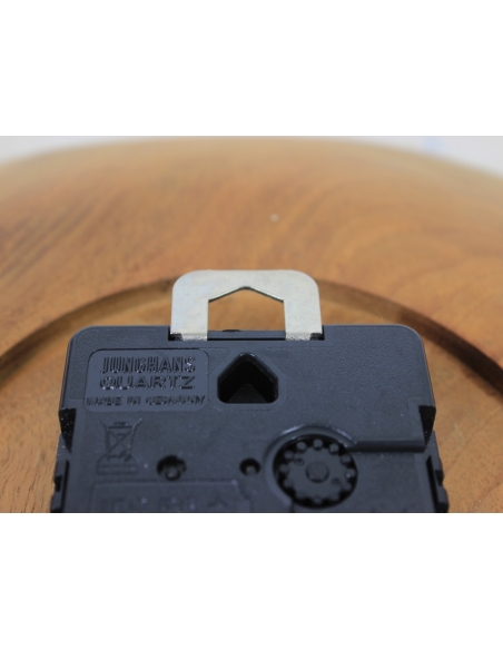Zegar Junghans wyprodukowany w latach 70. Wykonany jest z drewna tekowego i mosiądzu.