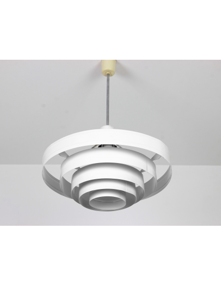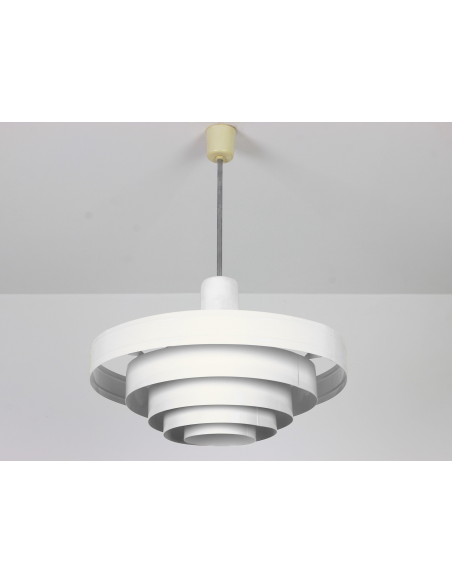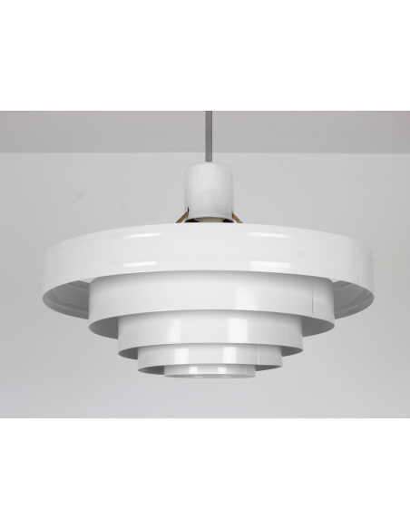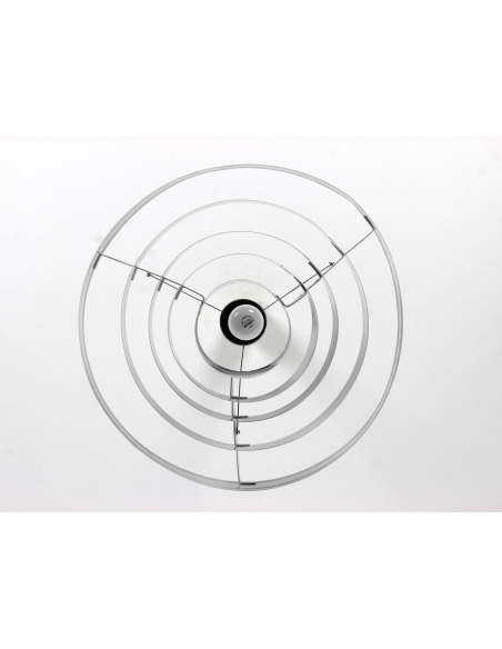 Lampa wyprodukowana w Polsce w latach 60. przez Zakłady Aparatury Oświetleniowej. Bazę stanowi pięć stalowych obręczy lakierowanych proszkowo. Powłoka lakiernicza nowa.