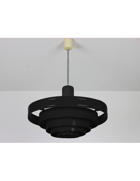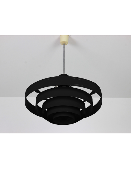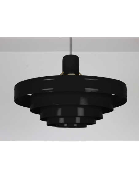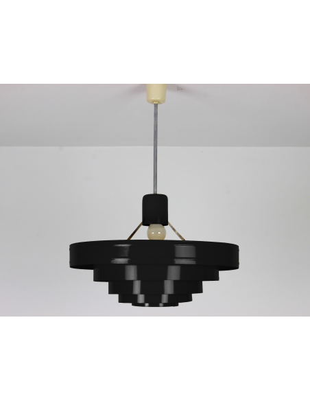 Lampa wyprodukowana w Polsce w latach 60. przez Zakłady Aparatury Oświetleniowej. Bazę stanowi pięć stalowych obręczy lakierowanych proszkowo. Powłoka lakiernicza nowa.