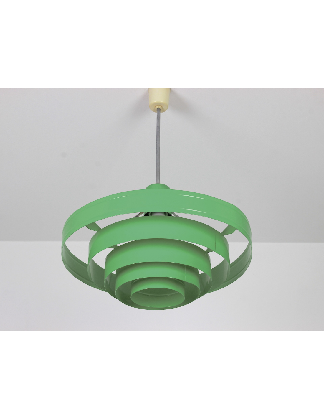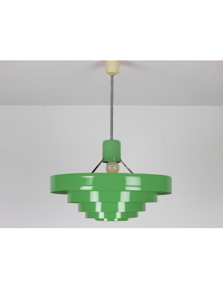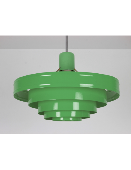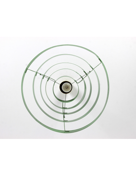Lampa wyprodukowana w Polsce w latach 60. przez Zakłady Aparatury Oświetleniowej. Bazę stanowi pięć stalowych obręczy lakierowanych proszkowo. Powłoka lakiernicza nowa.